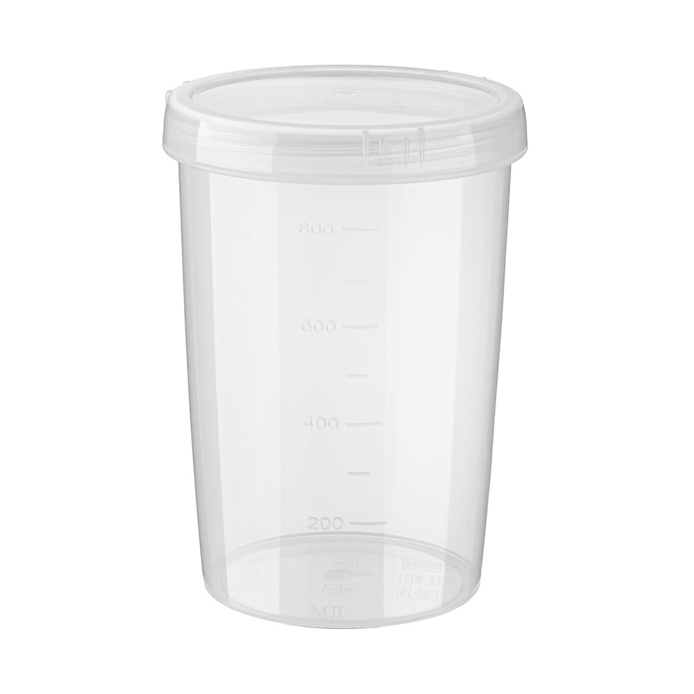 Прозрачный корпус и крышка позволяют видеть содержимое, а мерная шкала на корпусе поможет определить объем продукта.