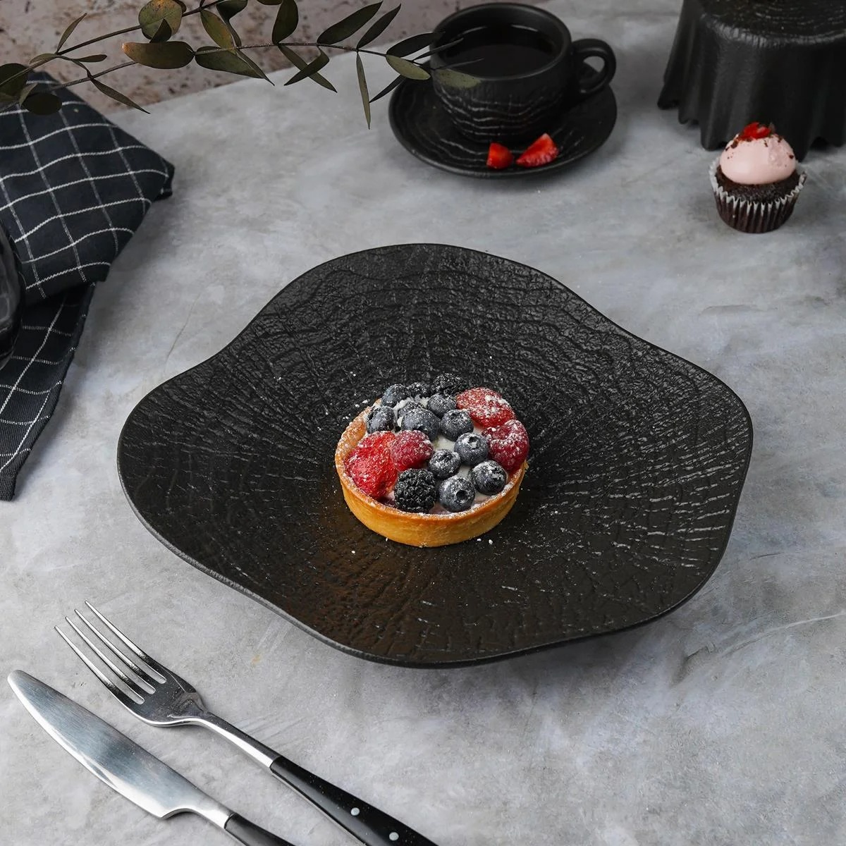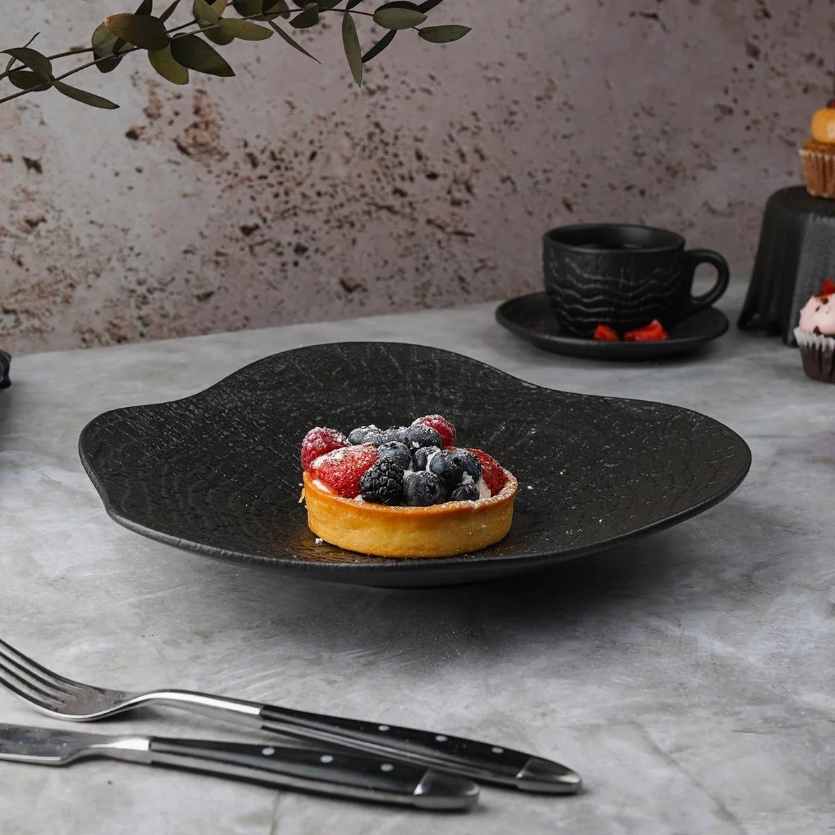Блюдо для салата d=26 см, h-4.7см , 400 мл, серия "Black Raw Wood" P.L. - ProffCuisine