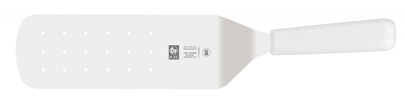 Ручка изделия выполнена из полипропилена белого цвета, устойчивого к высоким температурам и внешнему воздействию, рабочая часть - из высококачественной нержавеющей стали с добавлением хрома, молибдена и ванадия.