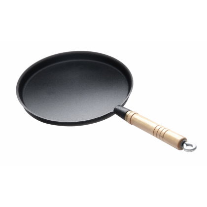 Сковорода чугунная блинная 220/15 с деревянной ручкой Luxstahl [HE96]